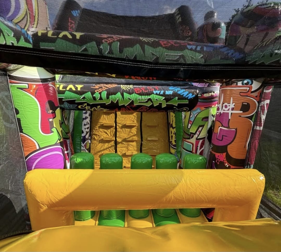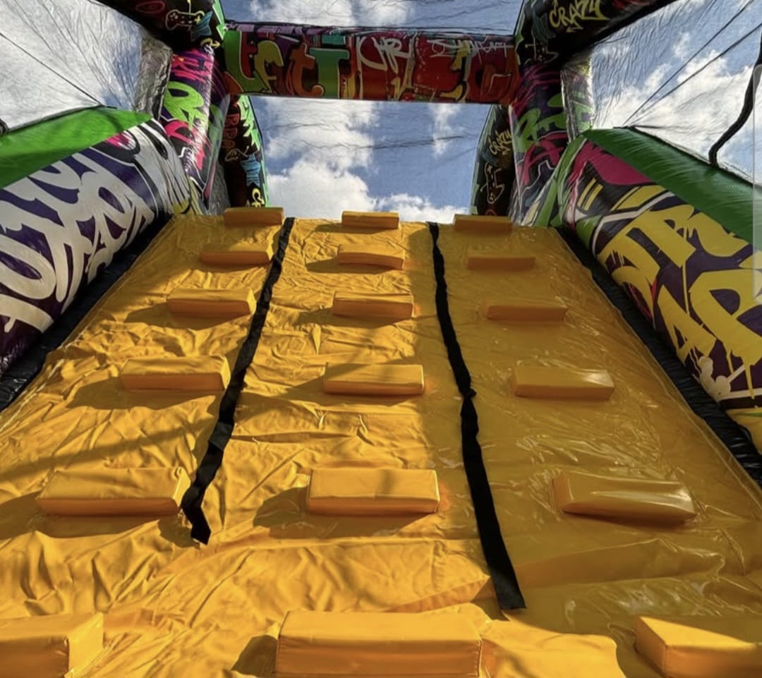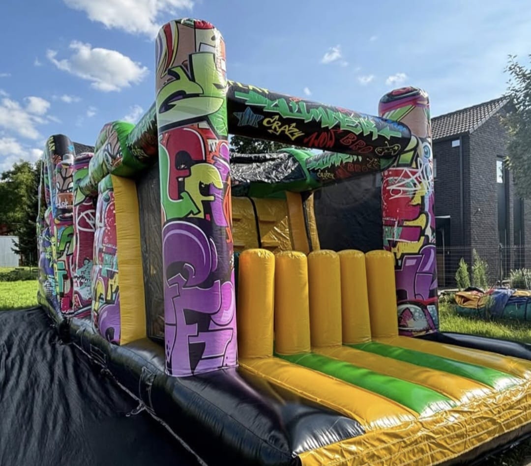 Op zoek naar een stoere en spectaculaire attractie? De Graffiti Run van 14 meter bij Schnappi Jump is een echte blikvanger! Met zijn kleurrijke graffiti-design en uitdagend parcours is hij perfect voor jong en oud.